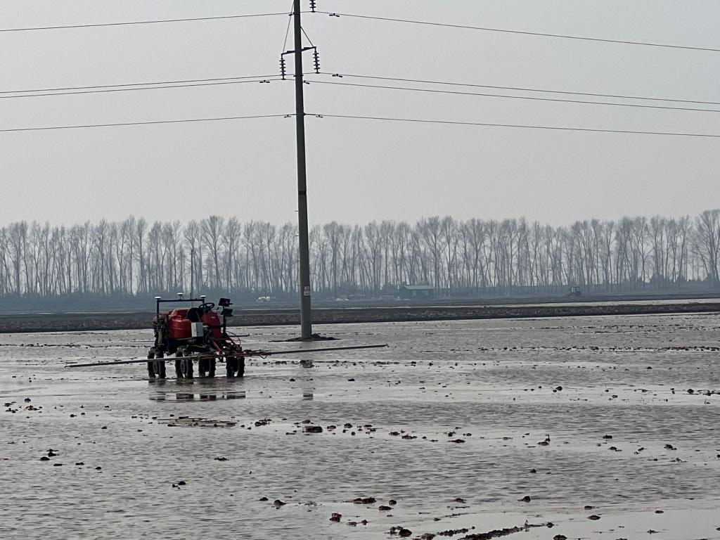 北大荒集團(tuán)建三江分公司創(chuàng)業(yè)農(nóng)場有限公司的一塊水田里,無人駕駛智能攪漿整地機(jī)正在作業(yè)。(受訪者供圖)