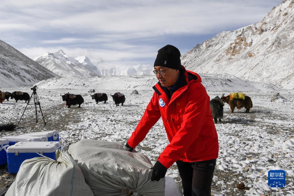 冰川與污染物科考小組負責(zé)人康世昌在檢查上山物資(5月1日攝)。新華社記者 姜帆 攝