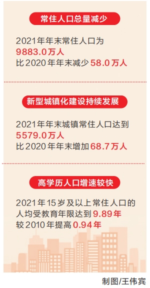 高學(xué)歷人口增速較快。2021年,全省15歲及以上常住人口的人均受教育年限達(dá)到9.89年,較2020年提高0.10年,較2010年提高0.94年。同時(shí),全省常住人口中,每10萬人中擁有大學(xué)(指大專及以上)文化程度的人口為12244人,高中(含中專)15739人,初中36619人,小學(xué)24821人。大學(xué)(指大專及以上)文化程度的人口增長(zhǎng)最快。(記者 李鵬)