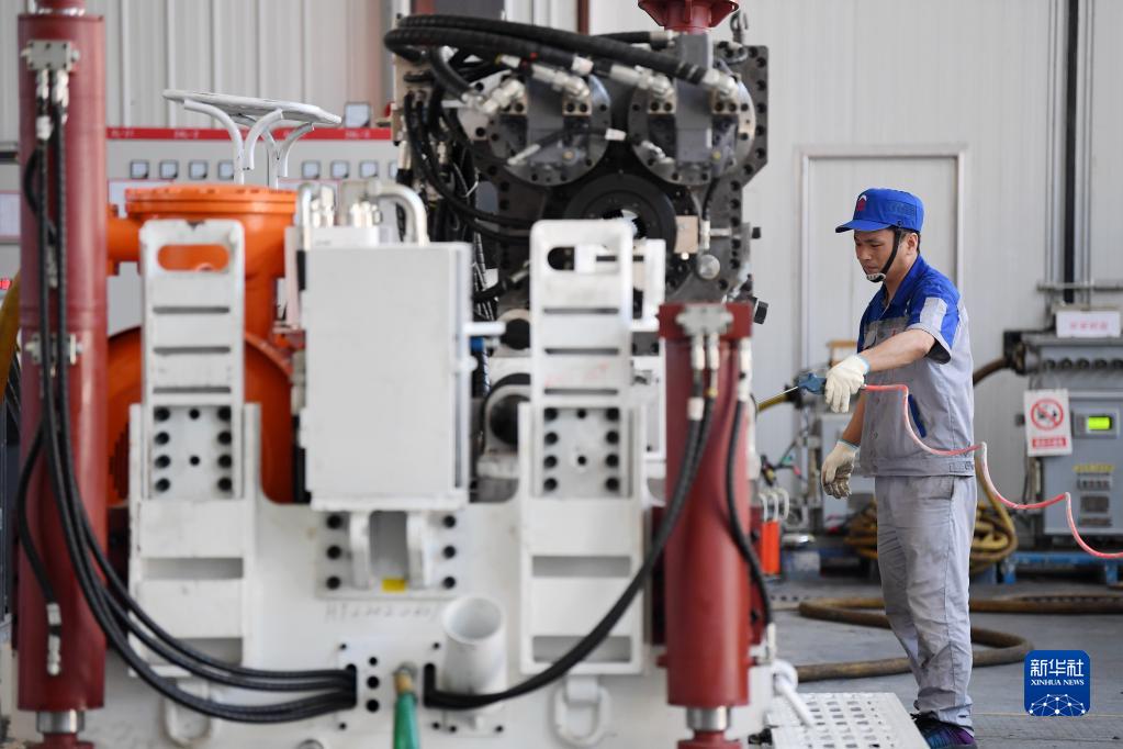 6月17日,在位于秦創(chuàng)原總窗口所在地陜西省西咸新區(qū)的陜西太合智能鉆探有限公司,工人準(zhǔn)備對智能定向鉆機(jī)進(jìn)行性能調(diào)試。 新華社記者 李一博 攝