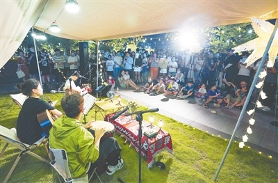 在鄭州M廣場(chǎng),既有充滿活力的野生樂(lè)隊(duì)演唱會(huì)、厚重的鄭州記憶老報(bào)紙展等,又有后備箱創(chuàng)意集市,免費(fèi)提供給創(chuàng)業(yè)者自主經(jīng)營(yíng)。在萬(wàn)象城的西西弗書(shū)店里,一群熱愛(ài)閱讀的市民,在書(shū)吧里靜心讀書(shū)。也有市民選擇到郊區(qū)野營(yíng),走近大自然。