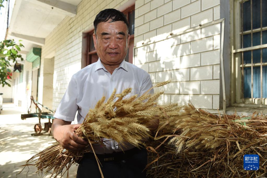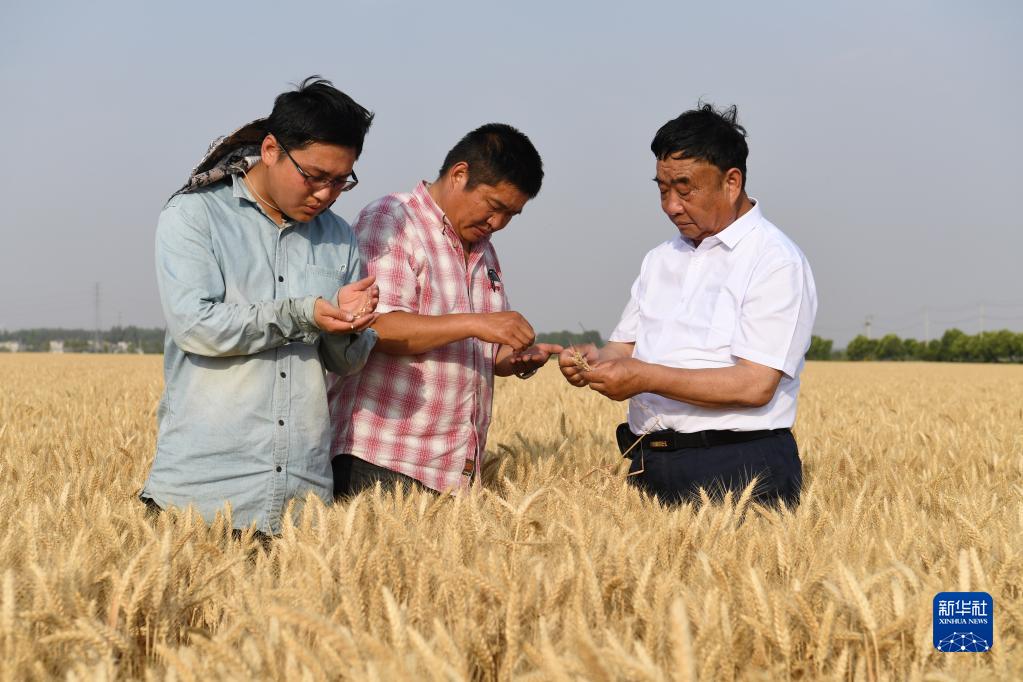 徐淙祥在安徽太和縣淙祥現代農業(yè)種植專業(yè)合作社察看小麥樣品(2022年6月28日攝)。新華社記者 周牧 攝