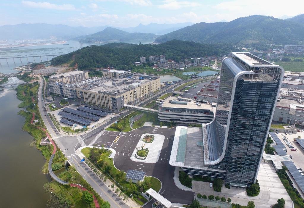 這是2019年9月11日拍攝的寧德時代新能源科技股份有限公司科技大樓和工程中心(無人機拍攝)。(新華社記者 林善傳 攝)