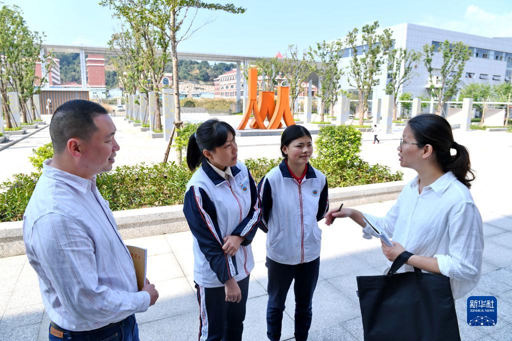 2019年10月24日,福建省福州市閩侯縣委巡察二組工作人員(右一)在閩侯縣職業(yè)中專學(xué)校了解中職補助資金發(fā)放情況。新華社記者 林善傳 攝