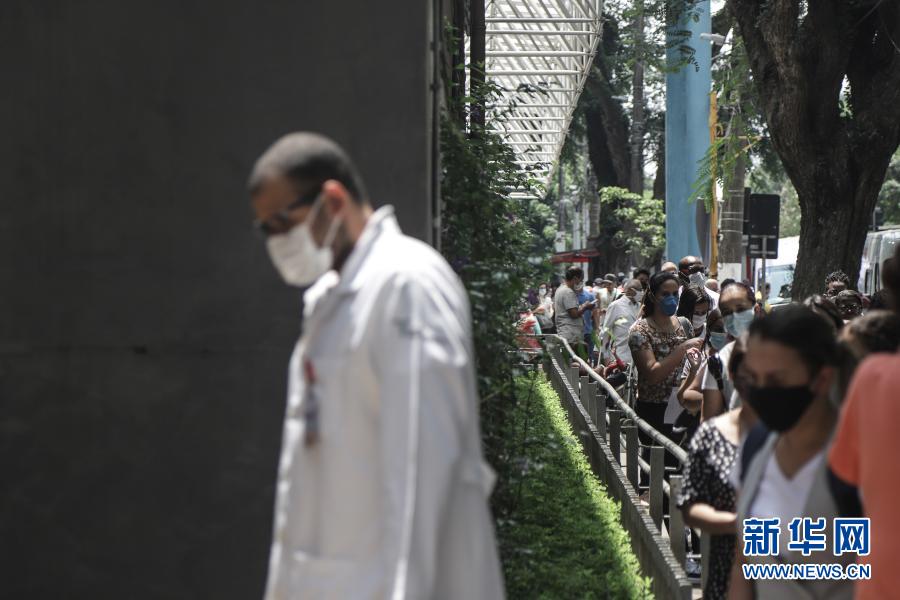 2021年1月19日,在巴西圣保羅,醫(yī)務人員排隊等待接種中國新冠疫苗。新華社發(fā)(拉赫爾·帕特拉索攝)