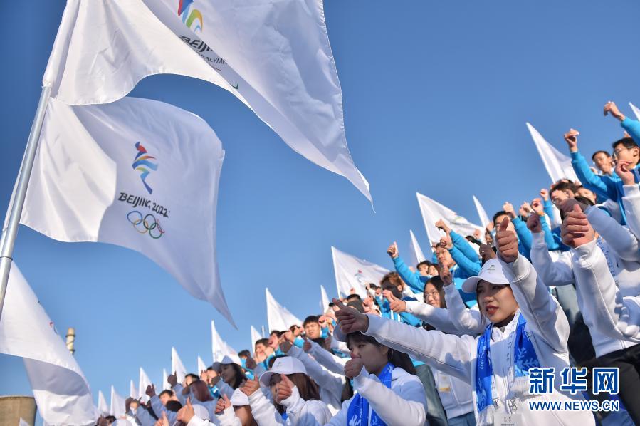 這是2019年12月5日,北京2022年冬奧會(huì)和冬殘奧會(huì)賽會(huì)志愿者全球招募正式啟動(dòng),志愿者代表在儀式現(xiàn)場豎起大拇指歡呼。新華社記者 彭子洋 攝
