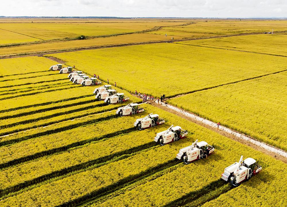 ▲ 2020年9月22日,中國(guó)農(nóng)民豐收節(jié),黑龍江省富錦市萬(wàn)畝水稻公園開(kāi)鐮儀式現(xiàn)場(chǎng) 張濤攝