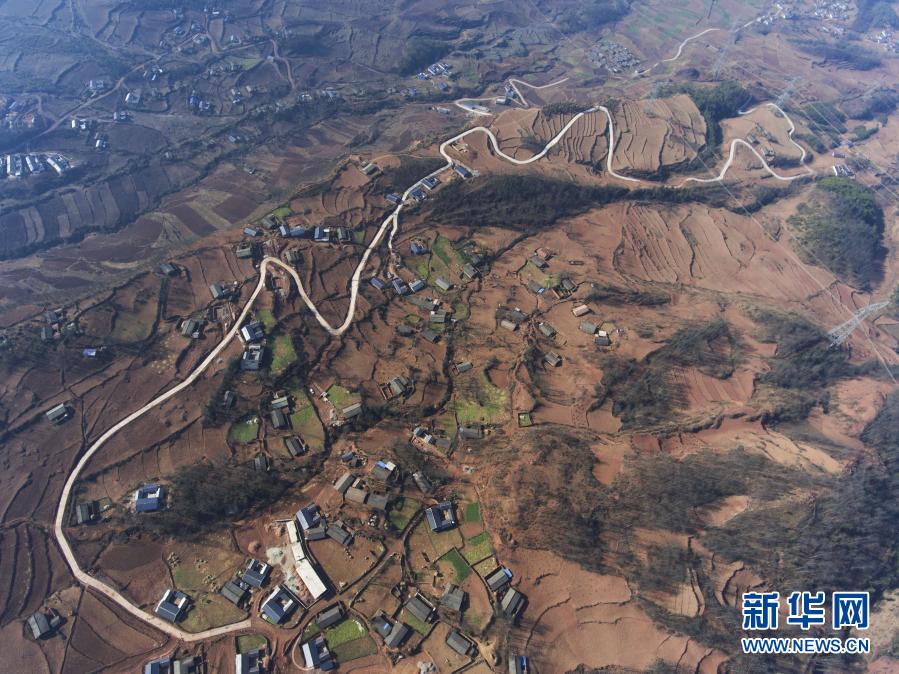 這是四川省涼山彝族自治州美姑縣九口鄉(xiāng)四峨吉村約6公里的道路硬化項目(2017年2月12日攝,無人機照片)。2015年8月,蔣富安由涼山州審計局派到美姑縣九口鄉(xiāng)四峨吉村任駐村第一書記,2016年8月22日因勞累猝死,年僅26歲。新華社記者 劉坤 攝