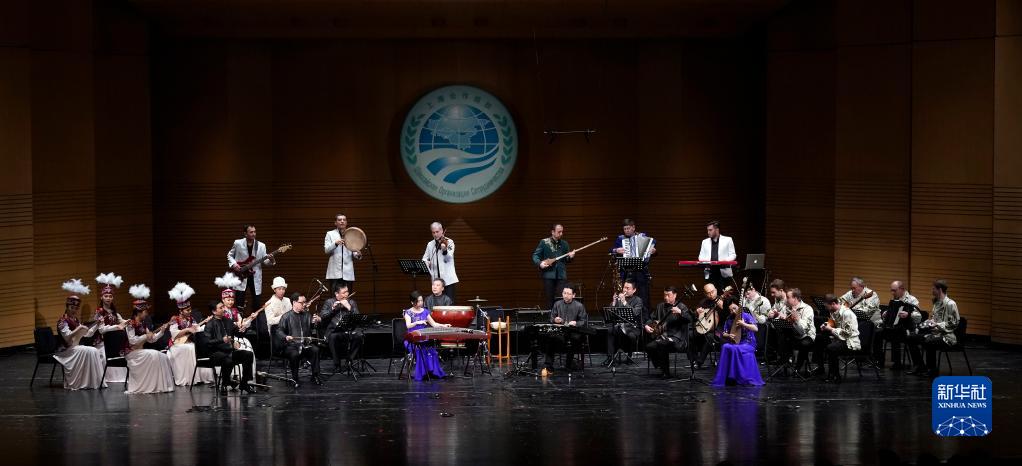 參演藝術(shù)家演奏中國民樂《喜洋洋》(2018年5月30日攝)。當(dāng)日,上海合作組織成員國藝術(shù)節(jié)在北京保利劇院開幕。新華社記者沈伯韓攝