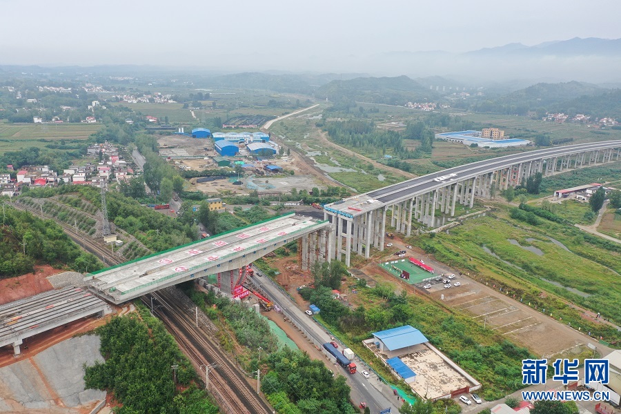 新華網(wǎng)鄭州9月22日電(范作言)9月20上午8:30,在河南南陽澠淅高速(澠池-淅川)跨寧西鐵路(南京-西安)轉(zhuǎn)體橋施工現(xiàn)場,隨著2臺牽引機的轟鳴啟動,重達21000噸的T構(gòu)梁緩慢順時針旋轉(zhuǎn),在歷時90分鐘旋轉(zhuǎn)67.5°后成功轉(zhuǎn)體,平穩(wěn)跨越了寧西鐵路和G312國道,在空中實現(xiàn)“華麗轉(zhuǎn)身”和精準(zhǔn)對接。