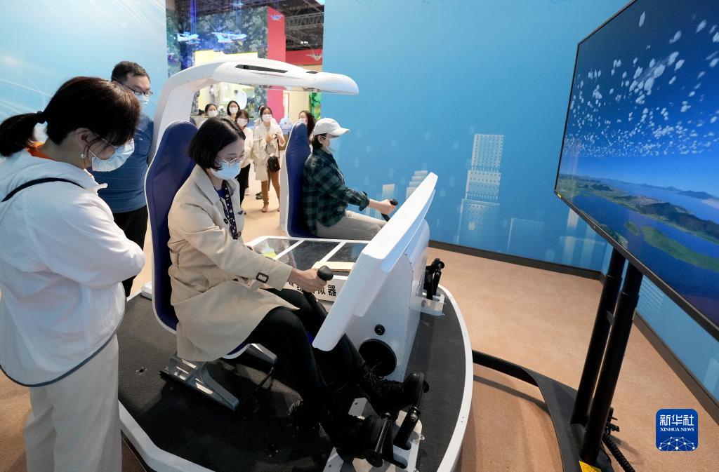 10月7日,觀眾在“奮進(jìn)新時(shí)代”主題成就展上體驗(yàn)操縱直升機(jī)訓(xùn)練模擬器。當(dāng)日是國慶長假的最后一天,大批觀眾來到北京展覽館參觀“奮進(jìn)新時(shí)代”主題成就展。新華社記者 王毓國 攝