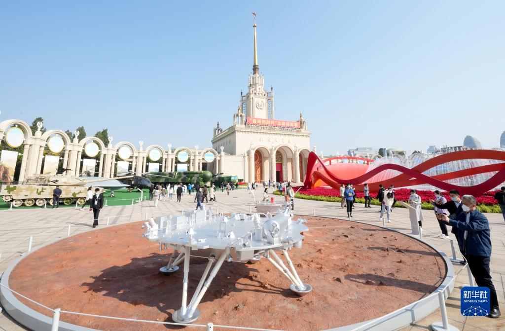 10月7日,觀眾在“奮進(jìn)新時(shí)代”主題成就展上參觀天問一號著陸器模型。當(dāng)日是國慶長假的最后一天,大批觀眾來到北京展覽館參觀“奮進(jìn)新時(shí)代”主題成就展。新華社記者 王毓國 攝