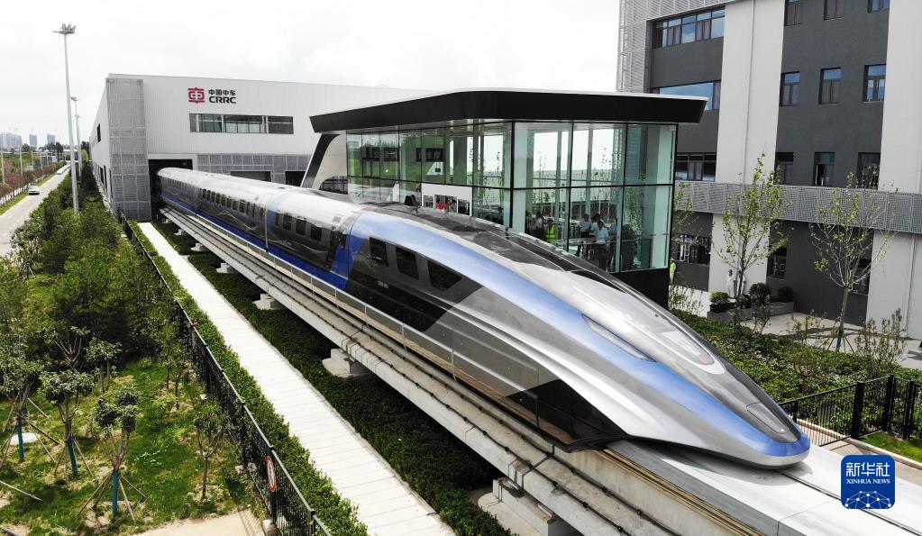 這是在山東青島拍攝的時(shí)速600公里高速磁浮交通系統(tǒng)(無人機(jī)照片,2021年7月20日攝)。新華社記者 李紫恒 攝