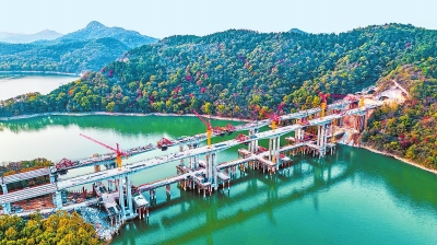 “作為許信高速關鍵性控制工程之一,溱頭河大橋左幅全長517米,右幅全長547米,跨越飲用水水源二級保護區(qū)薄山湖水庫,且與薄山1號隧道橋隧相連,施工工藝復雜、技術環(huán)保標準嚴格,具有相當大的挑戰(zhàn)性?!痹S信高速8標項目經(jīng)理王作恒說,施工前,項目部多次組織專家論證,對設計進行優(yōu)化。同時,加大施工力量投入,將流水作業(yè)改為平行作業(yè),確保了溱頭河主橋高質(zhì)量按時合龍。