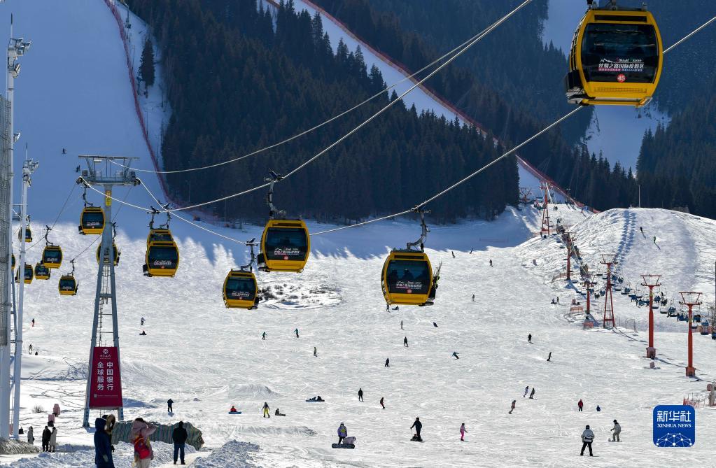 游客在新疆絲綢之路國際度假區(qū)滑雪游玩(1月25日攝)。新華社記者 胡虎虎 攝