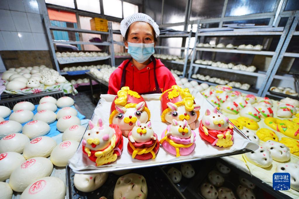 山東省青島市城陽區(qū)紅島街道觀濤社區(qū)的居民在制作傳統(tǒng)花饃,花樣別致的花饃寓意美好生活“蒸蒸日上”(1月17日攝)。新華社發(fā)(王海濱 攝)