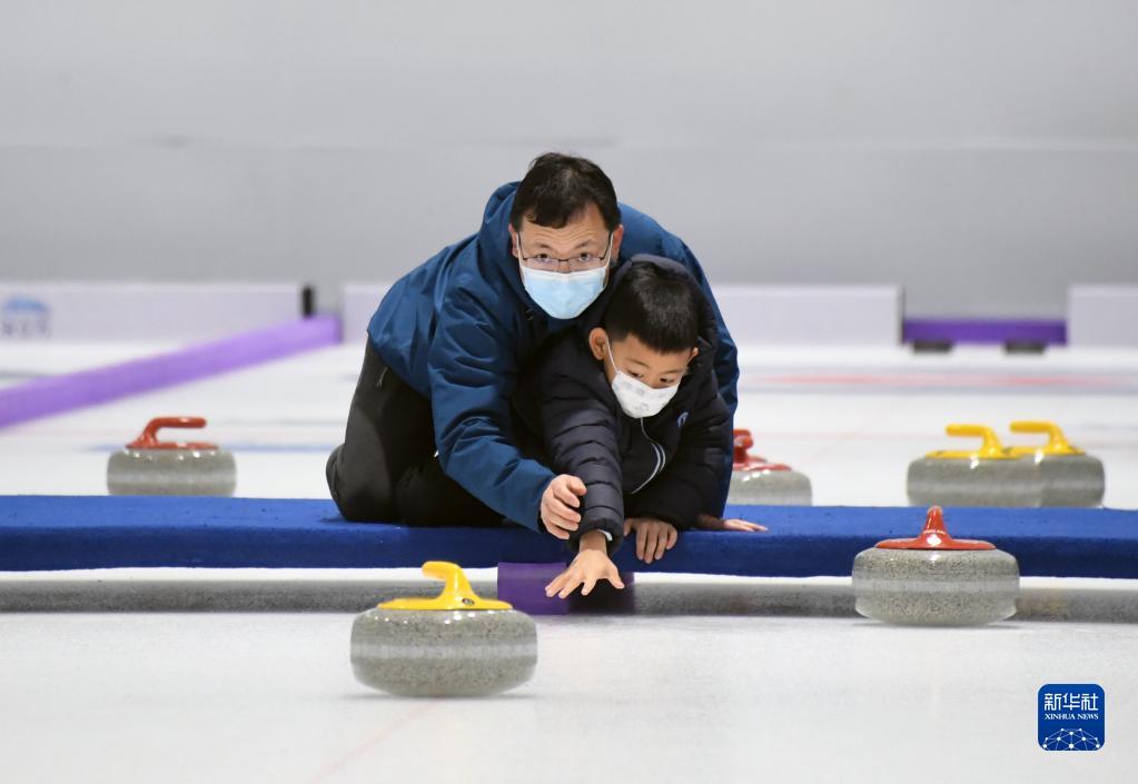 2023年1月23日,游客在“冰立方”冰上運(yùn)動(dòng)中心體驗(yàn)冰壺運(yùn)動(dòng)。新華社記者 任超 攝