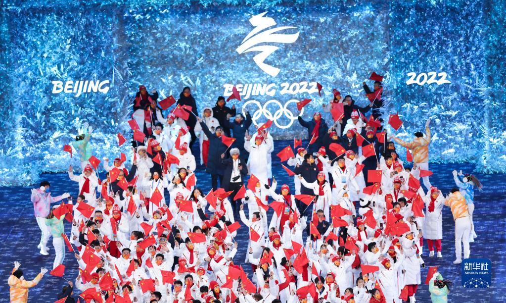 2022年2月20日晚,北京第二十四屆冬季奧林匹克運(yùn)動(dòng)會(huì)閉幕式在國(guó)家體育場(chǎng)舉行。這是中國(guó)代表團(tuán)成員入場(chǎng)。新華社記者 蘭紅光 攝