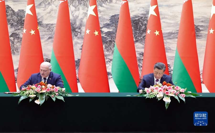 會(huì)談后,兩國(guó)元首共同簽署《中華人民共和國(guó)和白俄羅斯共和國(guó)關(guān)于新時(shí)代進(jìn)一步發(fā)展兩國(guó)全天候全面戰(zhàn)略伙伴關(guān)系的聯(lián)合聲明》,并見證簽署經(jīng)貿(mào)、工業(yè)、農(nóng)業(yè)、海關(guān)、科技、衛(wèi)生、旅游、體育、地方等領(lǐng)域多項(xiàng)雙邊合作文件。