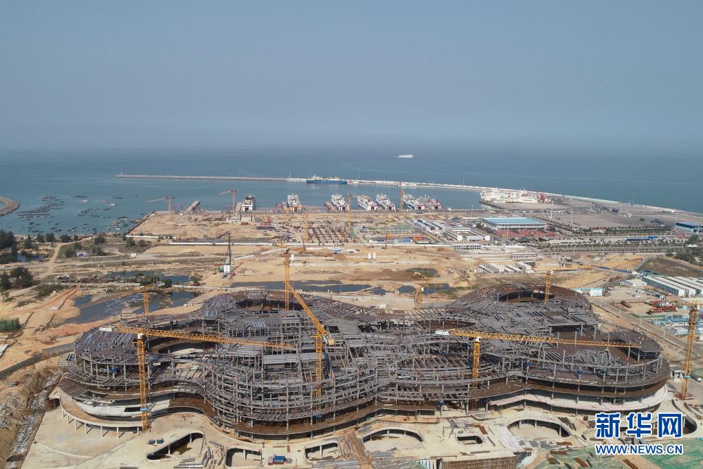 這是2月20日拍攝的??趪H免稅城項目施工現(xiàn)場(無人機照片)。新華社記者 張麗蕓 攝