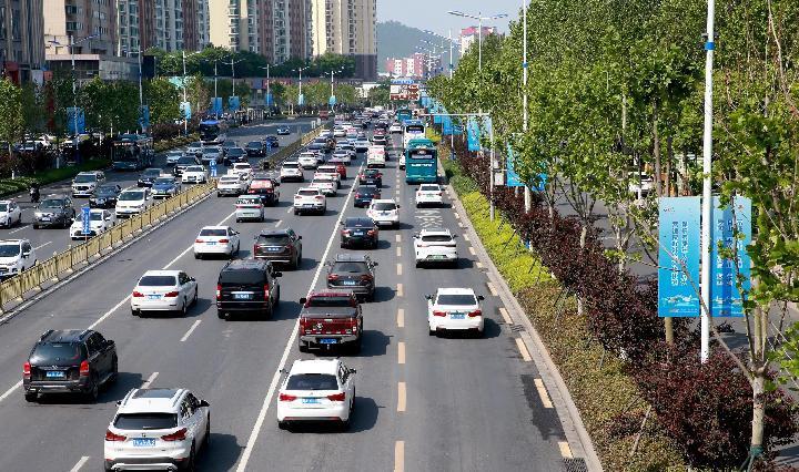 4月27日,山東省濟(jì)南市經(jīng)十路公交車道平峰期允許社會(huì)車輛通行。(新華社記者王陽攝)