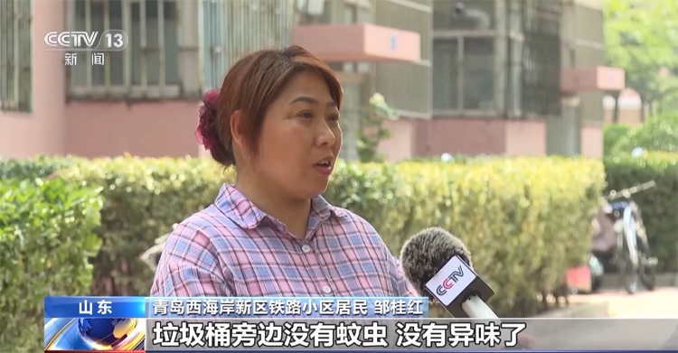青島西海岸新區(qū)鐵路小區(qū)居民 鄒桂紅:垃圾桶旁邊沒有蚊蟲、沒有異味了,很整潔、很干凈,小區(qū)的整體環(huán)境也提升上去了,所以說(shuō)我們特別想把垃圾分類分好,感覺居住在這個(gè)環(huán)境很舒服。