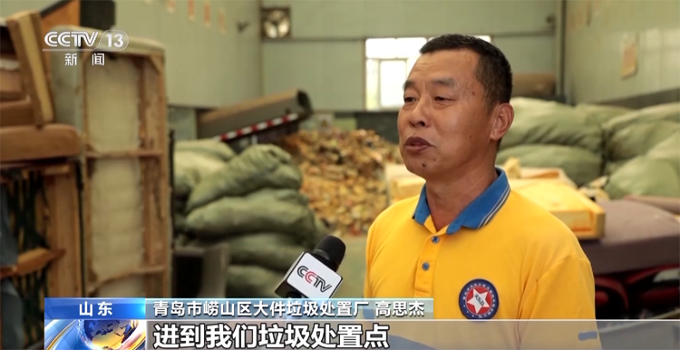 青島市嶗山區(qū)大件垃圾處置廠 高思杰:大件垃圾、沙發(fā)家具什么的,進(jìn)到我們垃圾處置點(diǎn),通過(guò)人工分揀,再通過(guò)設(shè)備的粉碎。粉碎完了以后,木頭我們揀出來(lái)做再利用,海綿和布再送到垃圾轉(zhuǎn)運(yùn)站去,做無(wú)害化處理。