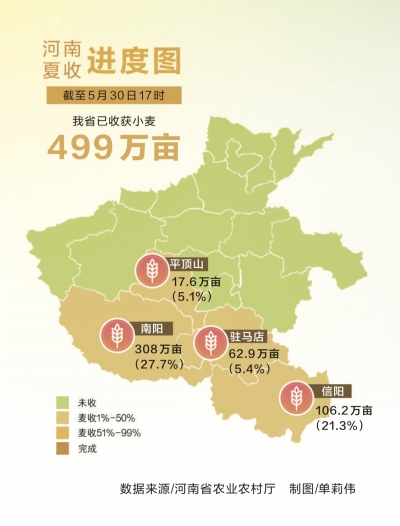 5月28日,確山縣當(dāng)?shù)亟涤甓虝和V梗拙Я⒓唇M織收割機(jī)搶收小麥,縣里的應(yīng)急作業(yè)隊(duì)也組織收割機(jī)趕來(lái)幫忙。他們一直忙到夜里下雨為止,當(dāng)天共搶收600多畝。