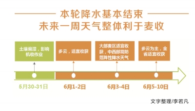 這輪降雨對(duì)麥種的品質(zhì)有多大影響?“有影響,但影響不大?!卑拙Ы忉專瑸榱祟A(yù)防可能出現(xiàn)的極端天氣,種麥時(shí)就平均種了4個(gè)品種小麥,其中兩個(gè)是正常熟的,兩個(gè)是晚熟的。正常熟的大部分在5月28日搶收了,晚熟的6月5日以后才能收割。