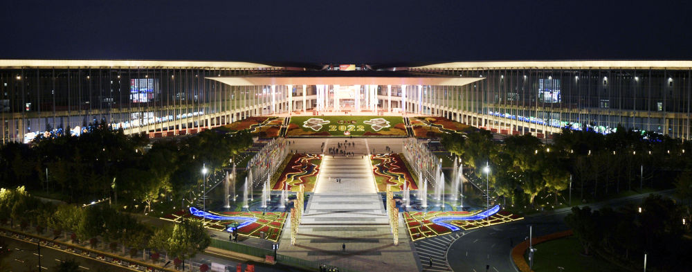 2022年11月5日至10日,第五屆中國(guó)國(guó)際進(jìn)口博覽會(huì)在國(guó)家會(huì)展中心(上海)舉行。這是11月5日拍攝的國(guó)家會(huì)展中心(上海)夜景。新華社記者 劉穎 攝
