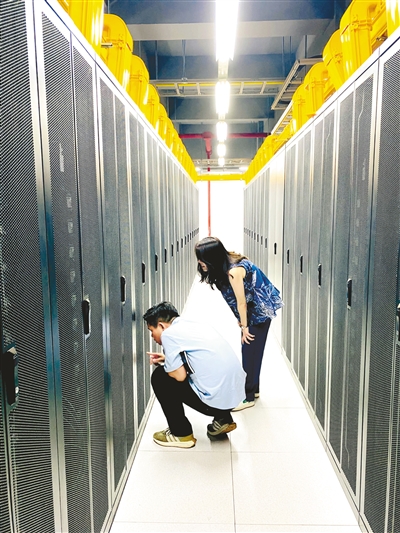 工作人員在APUS智算中心機(jī)房巡查