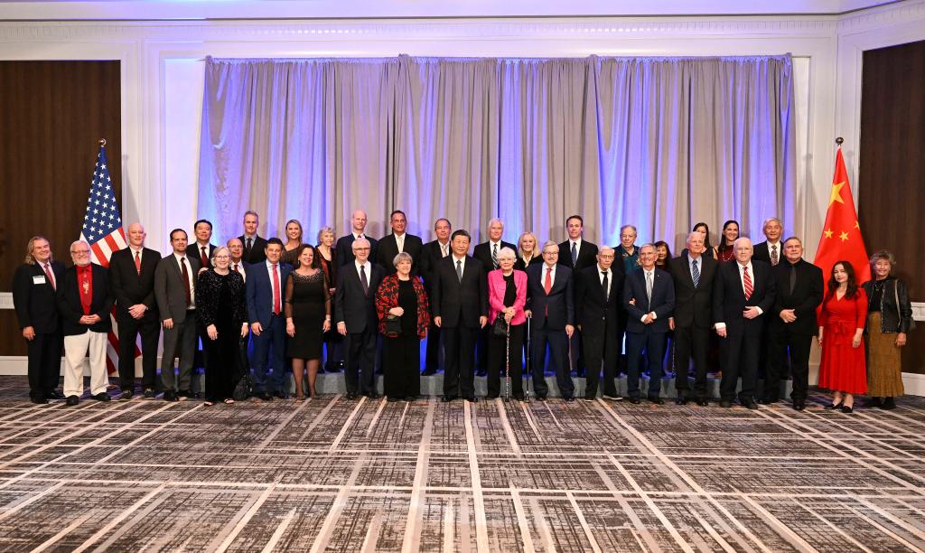 當(dāng)?shù)貢r間11月15日晚,國家主席習(xí)近平在美國舊金山出席美國友好團(tuán)體聯(lián)合舉行的歡迎宴會。這是宴會開始前,習(xí)近平會見飛虎隊和史迪威將軍后人、鼓嶺、艾奧瓦州、華盛頓州等方面友好人士代表,同他們親切交談并合影留念。