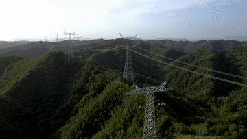 ??國(guó)網(wǎng)河南省電力公司員工在±800千伏青豫特高壓工程西陜段進(jìn)行線(xiàn)路檢修。