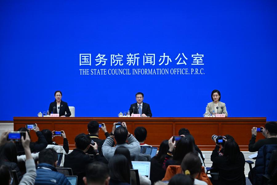 ??1月17日,國務(wù)院新聞辦公室在北京舉行新聞發(fā)布會,請國家統(tǒng)計局局長康義、國家統(tǒng)計局新聞發(fā)言人王冠華介紹2023年國民經(jīng)濟(jì)運行情況,并答記者問。新華社記者 金良快 攝