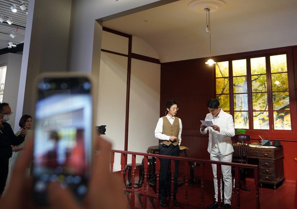 ??2023年5月18日晚,中共一大紀(jì)念館原創(chuàng)的情景黨課《又見(jiàn)新青年》在展廳內(nèi)實(shí)景演出。自2021年中國(guó)共產(chǎn)黨成立100周年之際全新開(kāi)放以來(lái),中共一大紀(jì)念館對(duì)紅色文化的創(chuàng)新傳播正不斷“圈粉”年輕人。新華社記者 劉穎 攝