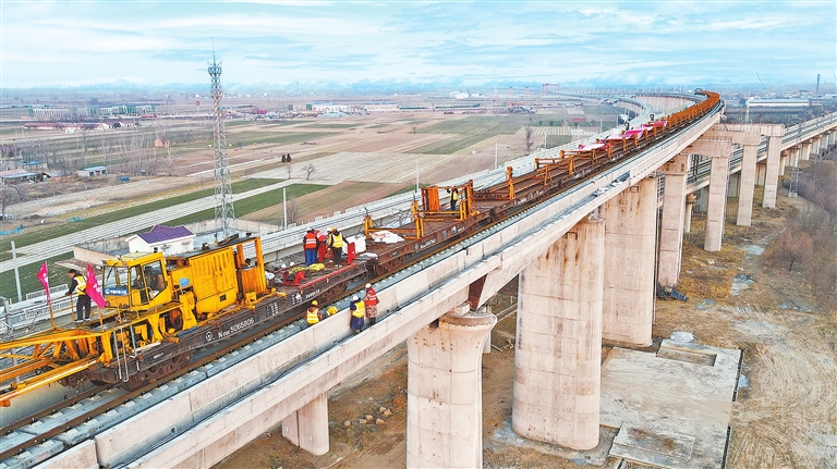 為確保河南段鋪軌順利完成,站前工程施工單位中鐵七局自2023年12月2日開始鋪軌以來,制定了詳細的工程線管理辦法,設立工程線調(diào)度室,增加資源配置,強化施工組織,克服暴雪、低溫天氣等困難施工條件影響,按時完成了長鋼軌運輸、鋪設任務。(記者 郭北晨)