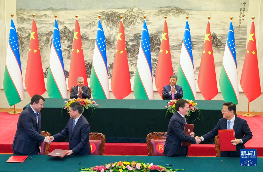 ??會談后,兩國元首簽署并發(fā)表了《中華人民共和國和烏茲別克斯坦共和國關(guān)于新時代全天候全面戰(zhàn)略伙伴關(guān)系的聯(lián)合聲明》,并共同見證簽署共建“一帶一路”、全球發(fā)展倡議、經(jīng)濟技術(shù)合作、互聯(lián)互通、環(huán)境保護、新能源、科技、人文、農(nóng)產(chǎn)品準入、地方等領(lǐng)域一系列合作文件。