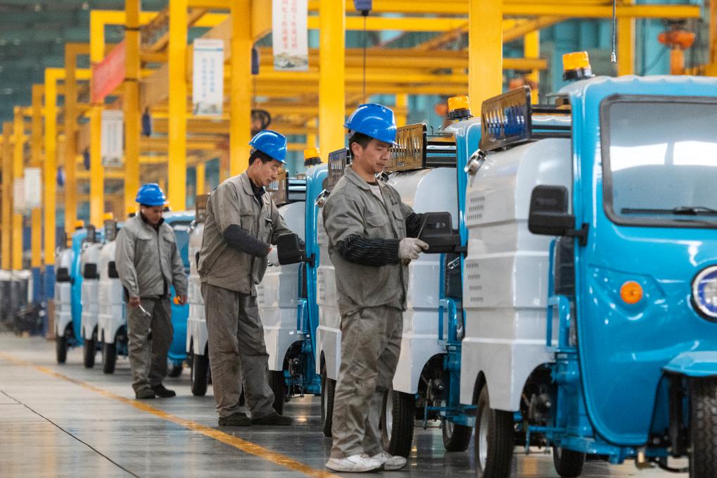 ?? 2月17日,在安徽省蕪湖市繁昌經(jīng)濟(jì)開發(fā)區(qū)愛瑞特新能源專用汽車生產(chǎn)車間里,工人組裝新能源電動(dòng)清掃車。新華社發(fā)(肖本祥 攝)