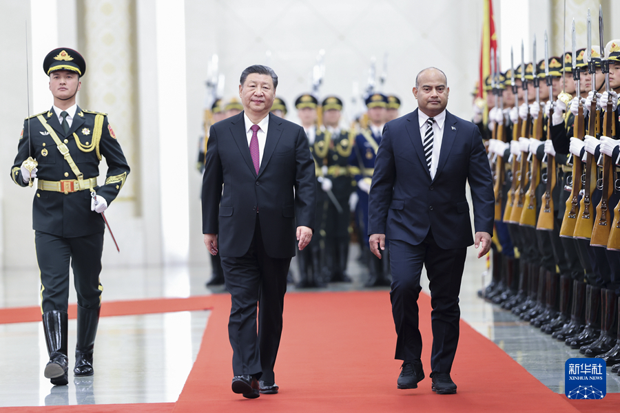??3月25日下午,國(guó)家主席習(xí)近平在北京人民大會(huì)堂同來(lái)華進(jìn)行國(guó)事訪問(wèn)的瑙魯總統(tǒng)阿迪昂舉行會(huì)談。這是會(huì)談前,習(xí)近平在人民大會(huì)堂北大廳為阿迪昂舉行歡迎儀式。新華社記者 劉彬 攝