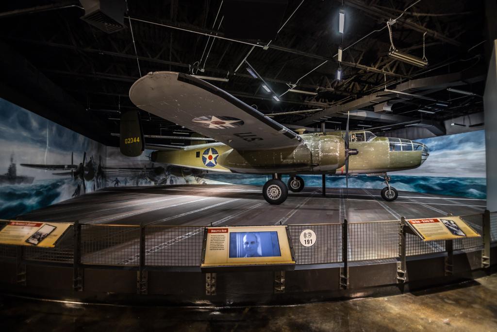 ??2023年12月8日,位于美國得克薩斯州的美國太平洋戰(zhàn)爭國家博物館,展出曾參與杜立特突襲行動的B-25轟炸機(jī)。