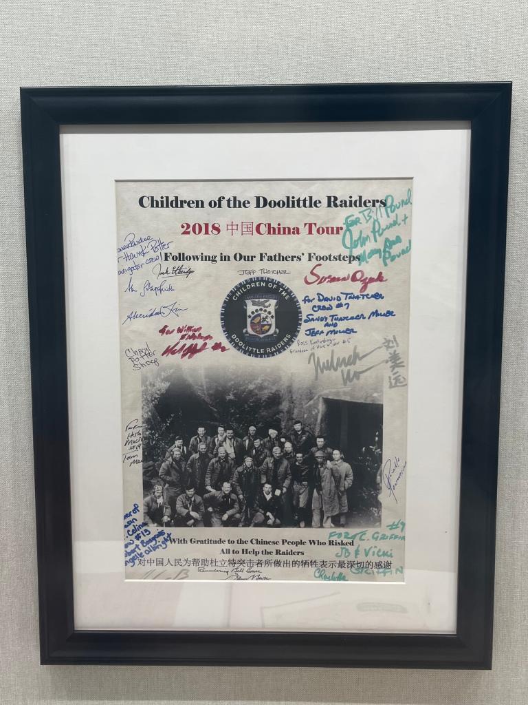 ??2018年,美國杜立特突襲者子女協(xié)會來衢州江山參加活動時的簽名,目前在江山市博物館珍藏。