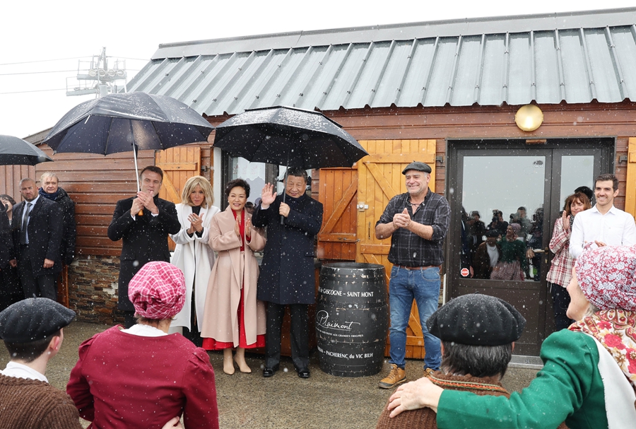 ??習近平說,這里的美麗風光和特色美食給我留下深刻印象。歡迎更多法國優(yōu)質(zhì)農(nóng)食產(chǎn)品進入中國百姓家,也歡迎更多友好的法國人民去中國參觀訪問。