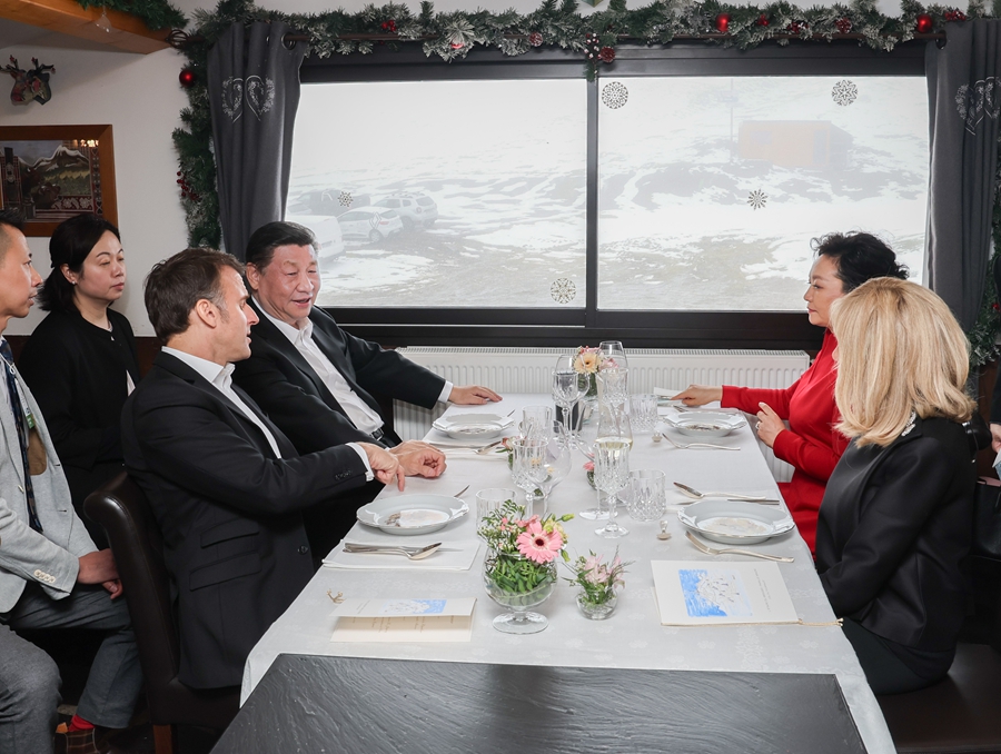 ??當?shù)貢r間5月7日,應(yīng)法國總統(tǒng)馬克龍?zhí)貏e邀請,國家主席習近平乘專機來到法國西南部上比利牛斯省訪問。在圖爾馬萊山口“牧羊人驛站”,習近平和夫人彭麗媛同馬克龍和夫人布麗吉特憑窗而坐,在輕松愉快的氛圍中就一些重要問題進行戰(zhàn)略溝通。新華社記者 姚大偉 攝