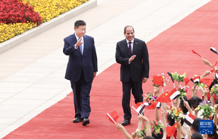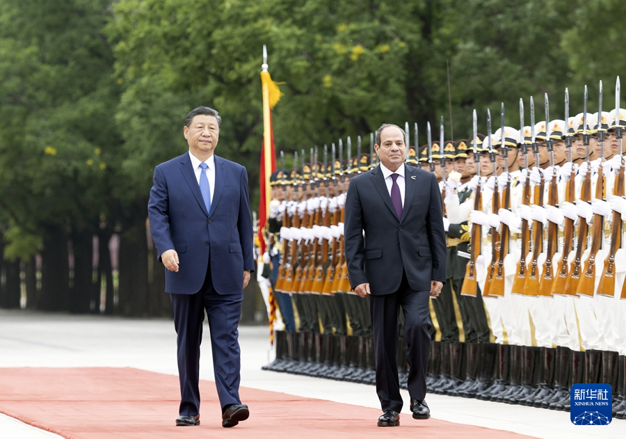 ??5月29日下午,國(guó)家主席習(xí)近平在北京人民大會(huì)堂同來(lái)華出席中國(guó)-阿拉伯國(guó)家合作論壇第十屆部長(zhǎng)級(jí)會(huì)議開幕式并進(jìn)行國(guó)事訪問(wèn)的埃及總統(tǒng)塞西舉行會(huì)談。這是會(huì)談前,習(xí)近平在人民大會(huì)堂東門外廣場(chǎng)為塞西舉行歡迎儀式。新華社記者 翟健嵐 攝