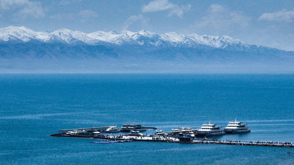 ??眼前的青海湖廣闊無(wú)垠,湖面宛如綢帶般綿延不絕,與遠(yuǎn)方的雪山相接,融入天際,成就了一幅如詩(shī)如畫(huà)的美景。
