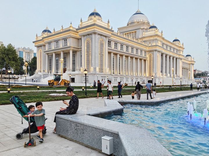 ??在總統(tǒng)府正門前平臺駐足,拉赫蒙總統(tǒng)指向不遠(yuǎn)處中國援建的議會(huì)大樓和政府大樓,告訴習(xí)近平主席:“議會(huì)大樓前廣場已成為市民們休閑避暑的好去處,是杜尚別的新打卡地?!?/span>