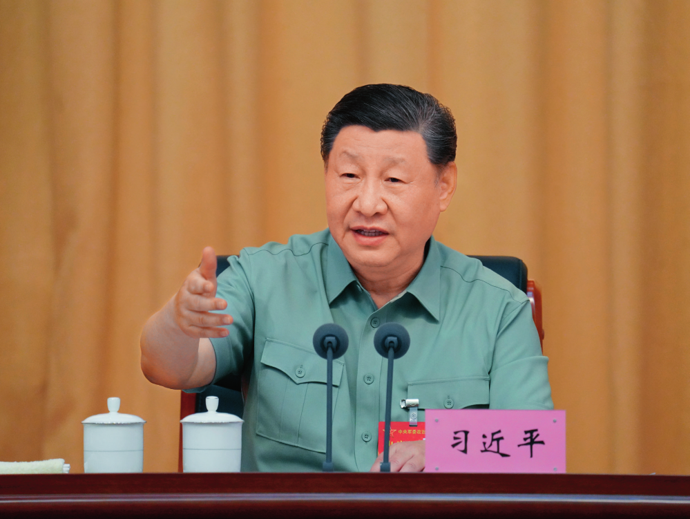 ??6月17日至19日,中央軍委政治工作會(huì)議在陜西延安召開。中共中央總書記、國(guó)家主席、中央軍委主席習(xí)近平出席會(huì)議并發(fā)表重要講話。這是17日下午,習(xí)近平發(fā)表重要講話。李剛攝/本刊