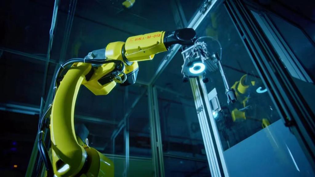 ??在九牧集團(tuán)精密注塑車間,數(shù)臺自動搬運機(jī)器人在車間與倉庫間穿梭,注塑機(jī)臺上的機(jī)械臂搭載紅外攝像頭,自動抓取物料。