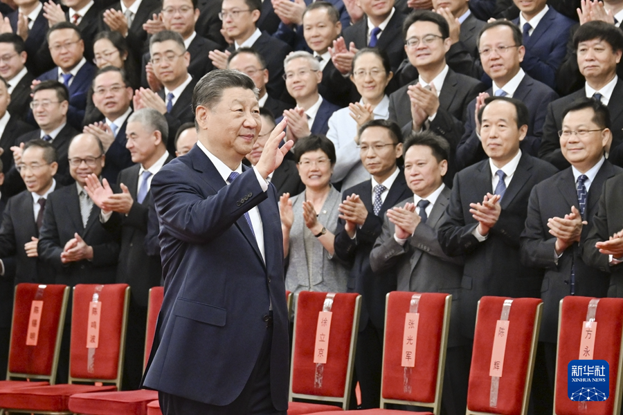 ??9月23日,黨和國(guó)家領(lǐng)導(dǎo)人習(xí)近平、李強(qiáng)、趙樂(lè)際、王滬寧、蔡奇、丁薛祥、李希等在人民大會(huì)堂接見(jiàn)探月工程嫦娥六號(hào)任務(wù)參研參試人員代表并參觀(guān)月球樣品和探月工程成果展覽。這是習(xí)近平發(fā)表重要講話(huà)。新華社記者 鞠鵬 攝