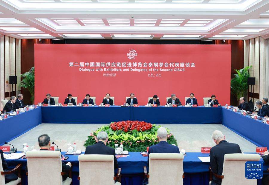 ??11月25日,國務(wù)院總理李強在北京同第二屆中國國際供應鏈促進博覽會參展參會企業(yè)代表座談。新華社記者 王曄 攝